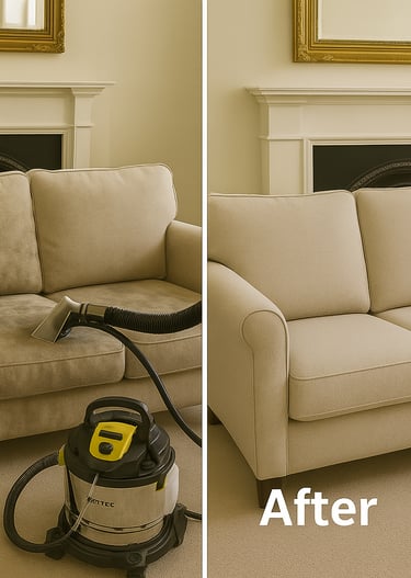 Nous sommes une entreprise familiale à taille humaine, née de la vie réelle, avec ses rires, ses petits accidents et ses grands défis. En tant que parents de jeunes enfants, nous savons combien un canapé, un tapis ou un matelas peut vite être victime des aventures du quotidien : taches, miettes, marques de feutres ou odeurs persistantes…